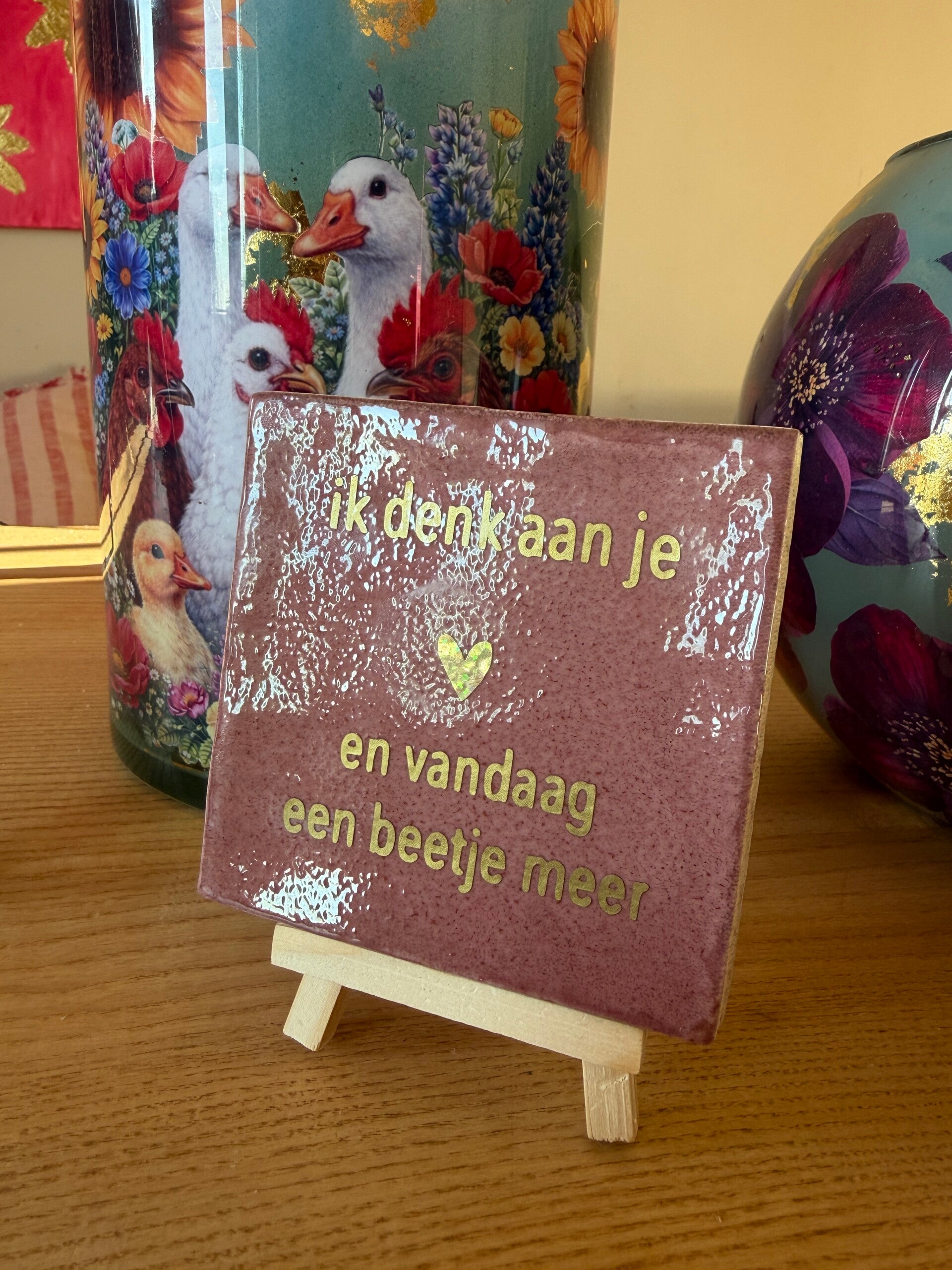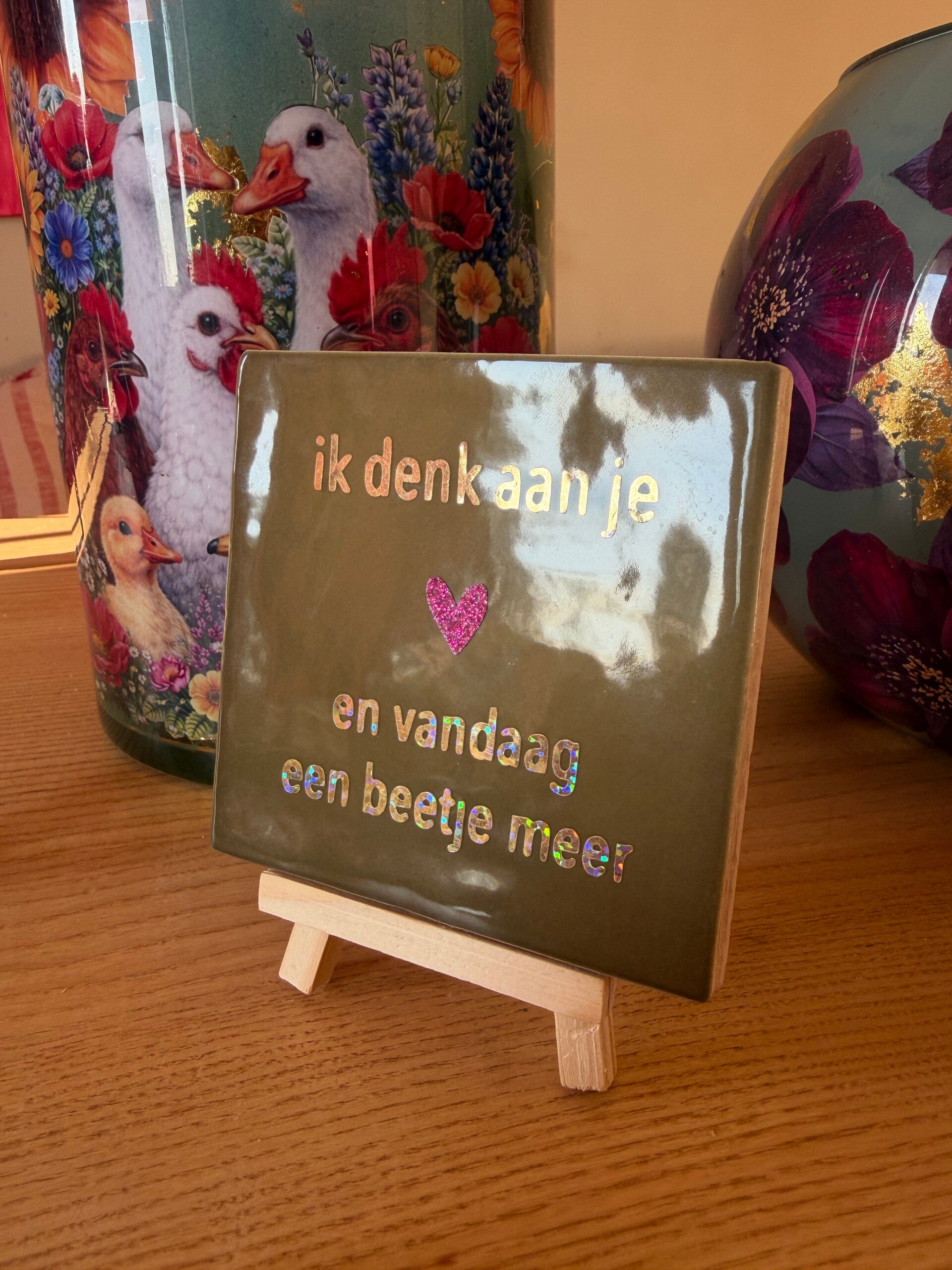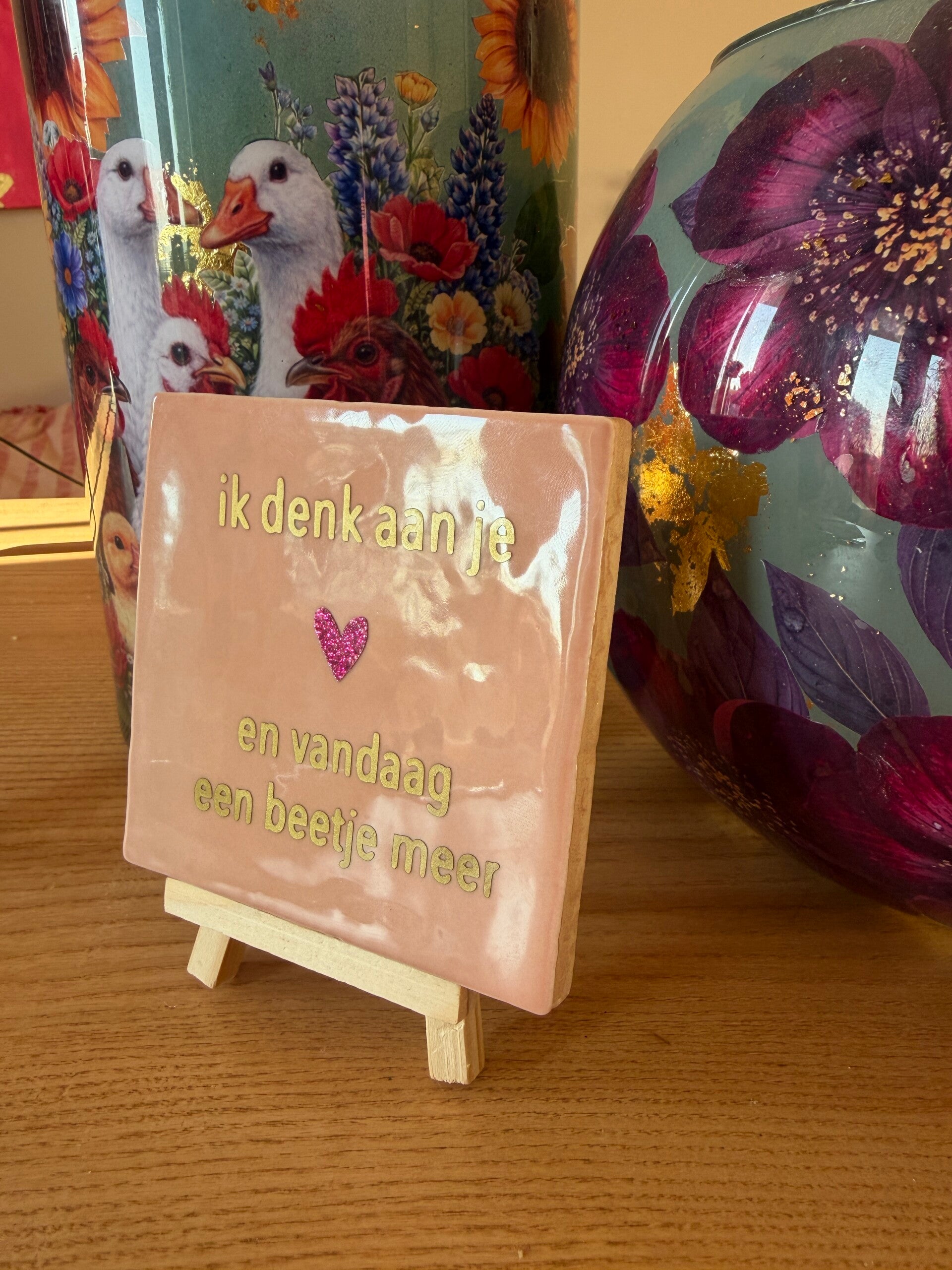 Soms zegt een klein gebaar alles. Dit lieve tegeltje met de tekst “Ik denk aan je ❤️ en vandaag een beetje meer” is een mooie manier om iemand te laten weten dat je aan hem of haar denkt.